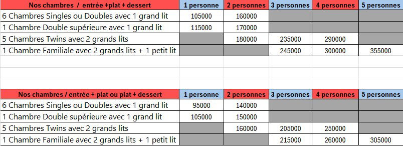 * Toutes nos réservations des chambres se font uniquement en demi-pension( Diner / chambre )